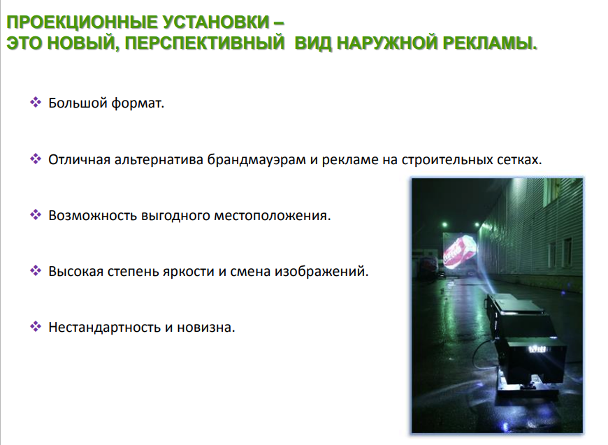 Однажды, был такой период, что внешний облик Москвы, решили преобразить, и тогда, со стен домов убрали отвратительные баннеры (вид наружной рекламы) и приняли новую редакцию ФЗ о Рекламе, добавив новый вид прекрасных*( *в букве закона дословно написано было - нестандартных) рекламных конструкций - проекционные установки. Тогда мы с партнером приобрели очень большие проекторы и начали развивать новый вид наружной рекламы - Проекции. Первой точкой нашей засветки стало место на Новом Арбате, на которое мы получили временное, "тестовое" разрешение, нашли клиентов- застройщика элитных коттеджей, заключили договор, светили, зарабатывали, но, после того как мы засветили проекцией в прицел ФСОшному снайперу, который сидел на крыше противоположного дома и сопровождал правительственный кортеж, тест пришлось прекратить.... Для дальнейшей деятельности нам нужно было получить официальное разрешение от ДепСМИ. Это было сделать достаточно не просто, потому что никто и нигде не знал как именно нас регистрировать официально, ведь прецендентов регистрации таких конструкций ранее не было. Вооружившись действующим законодательством, моим юридическим образованием и боевым настроем, составив список мест, где бы мы хотели установить наши проекторы, мы, в роли первопроходцев, оправились в удивительный поход по органам местного самоуправления и самоуправства. Мы постоянно еели переговоры с Департаментом СМИ и Рекламы, Москомархитектурой и др.. органами местного самоуправления, потому что никто не был в курсе как именно нас регистрировать и какие документы им от нас нужны. В начале пути, у нас не было предписанных правил по месту установки наших проекторов- это значит, что мы могли светить хоть на стену Кремля, и, конечно, первоначальные места были внутри садового кольца, но так как мы никому не "заносили" нам сказали: -лучше не "светиться"(отличный каламбур), дабы не привлекать лишнего внимания, хотя как раз на это мы и рассчитывали, это ведь реклама! Но, потом пришли новые поправки к ФЗ и нам ограничили зональность размещения - за садовый кольцом. И снова мы пошли в разведку и на переговоры с собственниками зданий, на которые планировали светить. А потом, достигнув договоренностей на местах, мы опять пошли на регистрацию в ДепСМИ, но, удивительно!, нас снова развернули.... а потом, новыми поправками нас отправили за третье кольцо. Казалось, что органы власти победили....победили здравый смысл. Но, мы не сдавались и нашли новые места, это было сложнее, потому что новые места за третьим кольцом - были, сплошь, - многоквартирные дома, А для того, чтобы получить разрешение, нам нужно было положительное решение собственника здания с которого мы проецировали, а так же решение собственника здания на который мы светили, т.е. работ, волокиты и прочего было в разы больше, чем в любых других типах наружной рекламы....Поэтому мы начали инициировать и проводить общие собрания "дружных" жильцов в многоквартирных домах. Это было познавательно, ведь люди считали, что мы их можем облучить через стену - галогенной лампочкой, не хуже чем рентгеном....Как то даже ружьем угрожали, а мы то всего лишь денег им предлагали) Через некоторое время мы все таки зарегистрировали первую (и в итоге последнюю) в России точку установки проекционной рекламы около м.Сокольники. Мы начали светить, прод